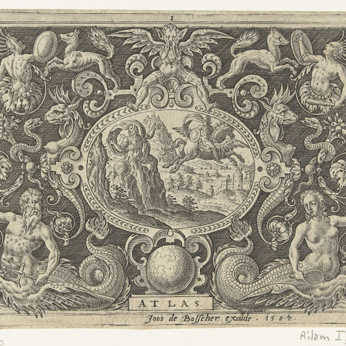 Cartouche Atlas door Perseus in een berg veranderd, Abraham de Bruyn, 1584 Rijksmuseum