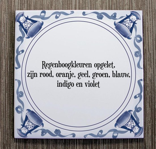 Tegeltje met Spreuk (Tegeltjeswijsheid) Regenboogkleuren opgelet, zijn rood, oranje,... bol